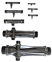 Venturi Injectors (Injectors) work by forcing water through a conical body which initiates a pressure differential between the inlet and outlet ports. This creates a vacuum inside the injector body, which initiates ozone suction through the suction port.